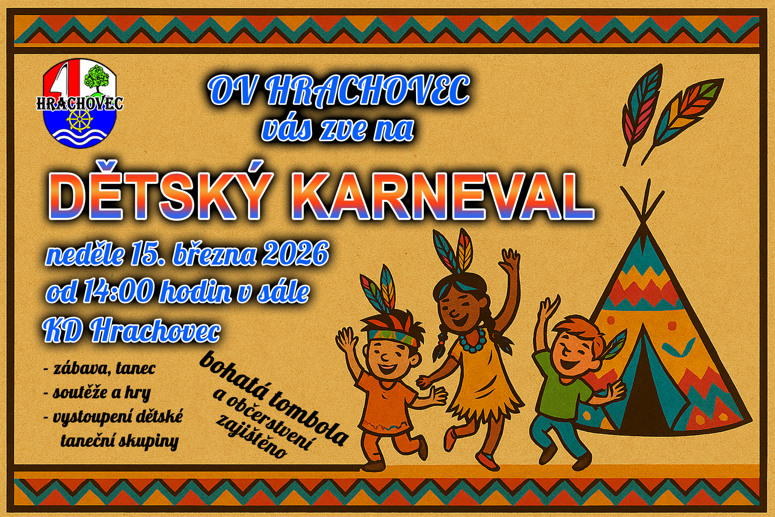 Dětský karneval 14:00 15. 3. 2026 Kulturní dům HrachovecHrachovec 200Valašské Meziříčí, Česká republika 75701Zobrazit lokalituMapa Kulturní dům Hrachovec iCal Google Zobrazit celý kalendář